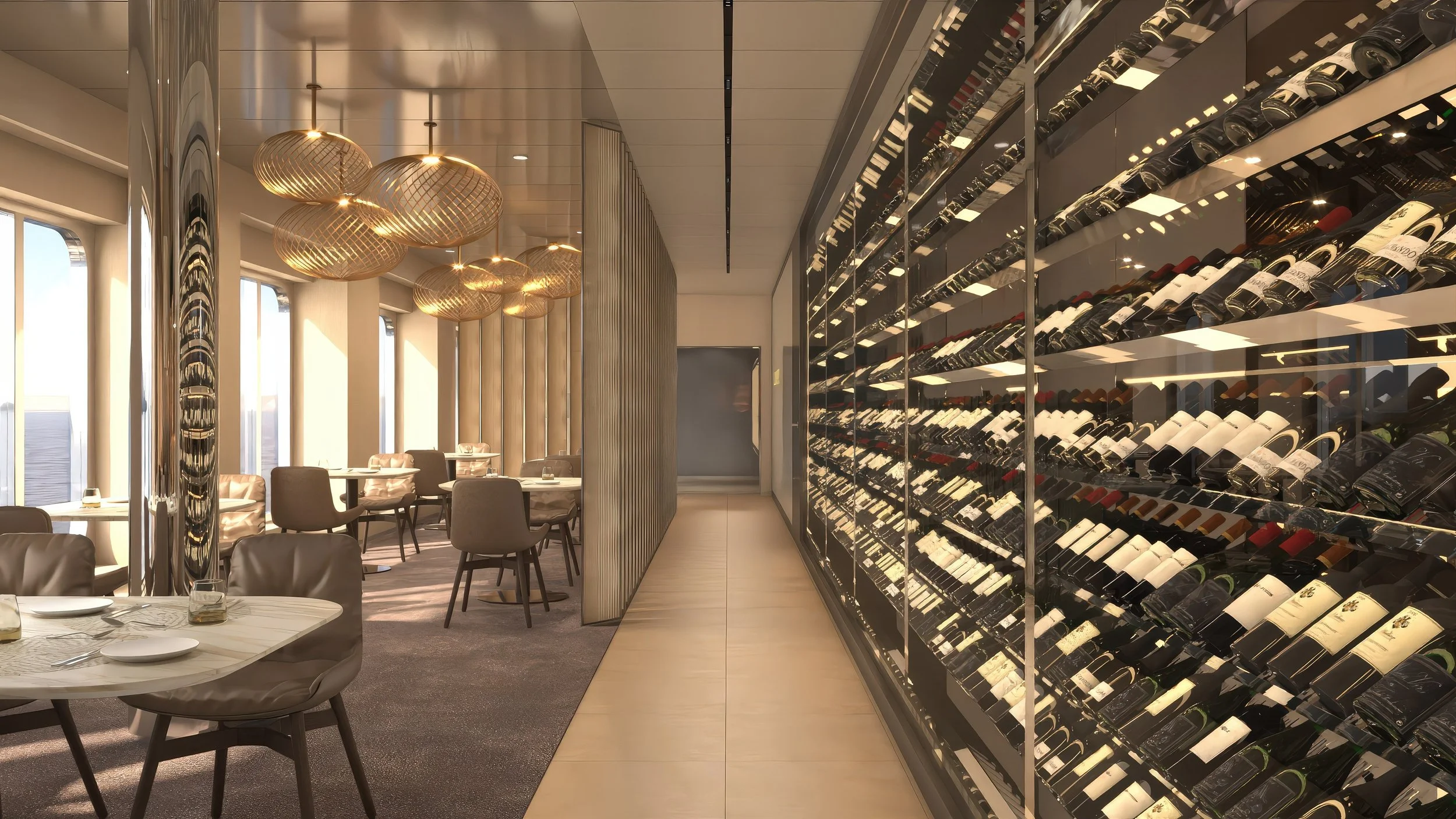 The feeling: Classic ocean liner travel with timeless elegance, maritime tradition, and a refined onboard atmosphere inspired by the golden age of transatlantic voyages.